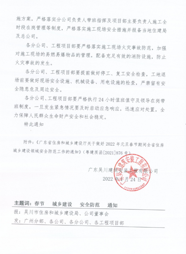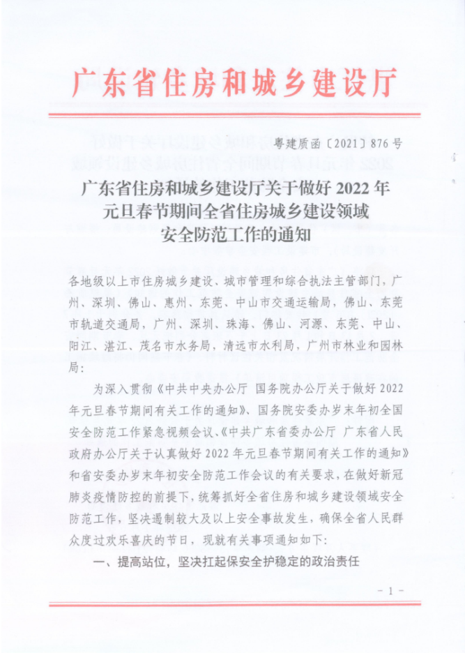關于轉發省住建廳《關于做好2022年元旦春節期間全省住房城鄉建設領域安全防范工作的通知》的通知