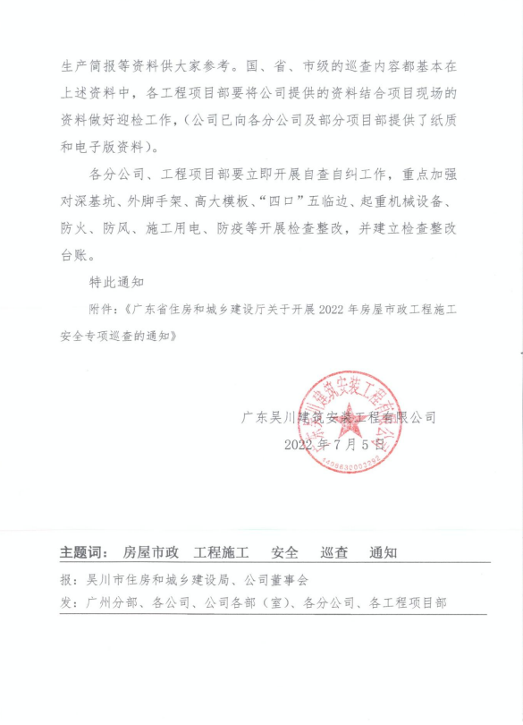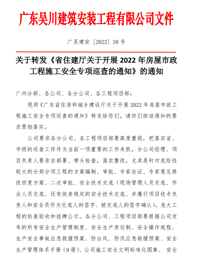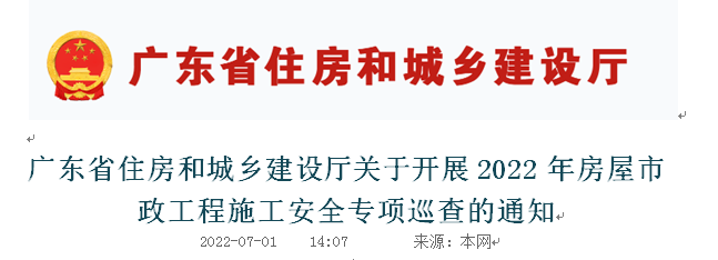 為認真落實《住房和城鄉(xiāng)建設部關于開展房屋市政工程安全生產(chǎn)治理行動的通知》(建質(zhì)電〔2022〕19號)、《廣東省安全生產(chǎn)委員會關于印發(fā)<廣東省安全生產(chǎn)大檢查工作實施方案>的通知》(粵安〔2022〕6號)工作部署,進一步壓實建設各方安全生產(chǎn)主體責任,治理施工安全突出問題,切實提升全省施工安全管理水平,按照我廳今年重點工作任務安排,結合我省城市建設安全專項整治三年行動有關工作實際,我廳通過政府購買服務的方式,委托第三方專業(yè)機構,開展全省房屋市政工程施工安全專項巡查。現(xiàn)將有關事項通知如下: