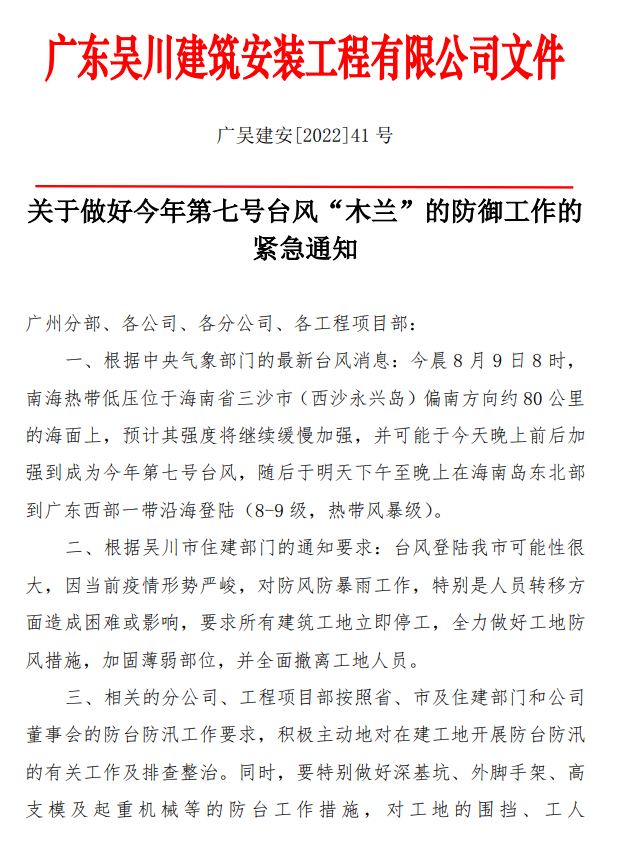 關于做好今年第七號臺風“木蘭”的防御工作的緊急通知