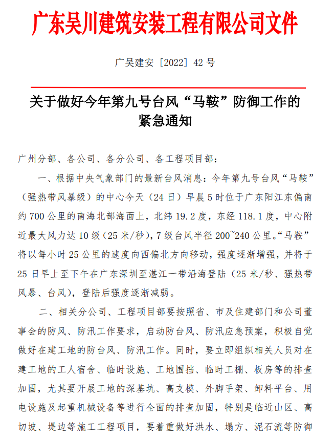 關于做好今年第九號臺風“馬鞍”防御工作的緊急通知