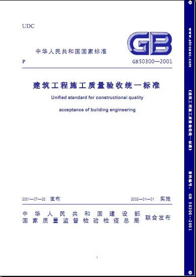 并,組成新的工程質量驗收規(guī)范體系,以統(tǒng)一建筑工程施工質量的驗收方法、質量 《建標準和程序。本標準規(guī)定了建筑工程各專業(yè)工程施工驗收規(guī)范編制的統(tǒng)一準則和單 位工程驗收質量標準、內容和程序等;增加了建筑工程施工現(xiàn)場質量管理和質量控 程 制要求;提出了檢驗批質量的抽樣方案要求;規(guī)定了建筑工程施工質量驗收中子單